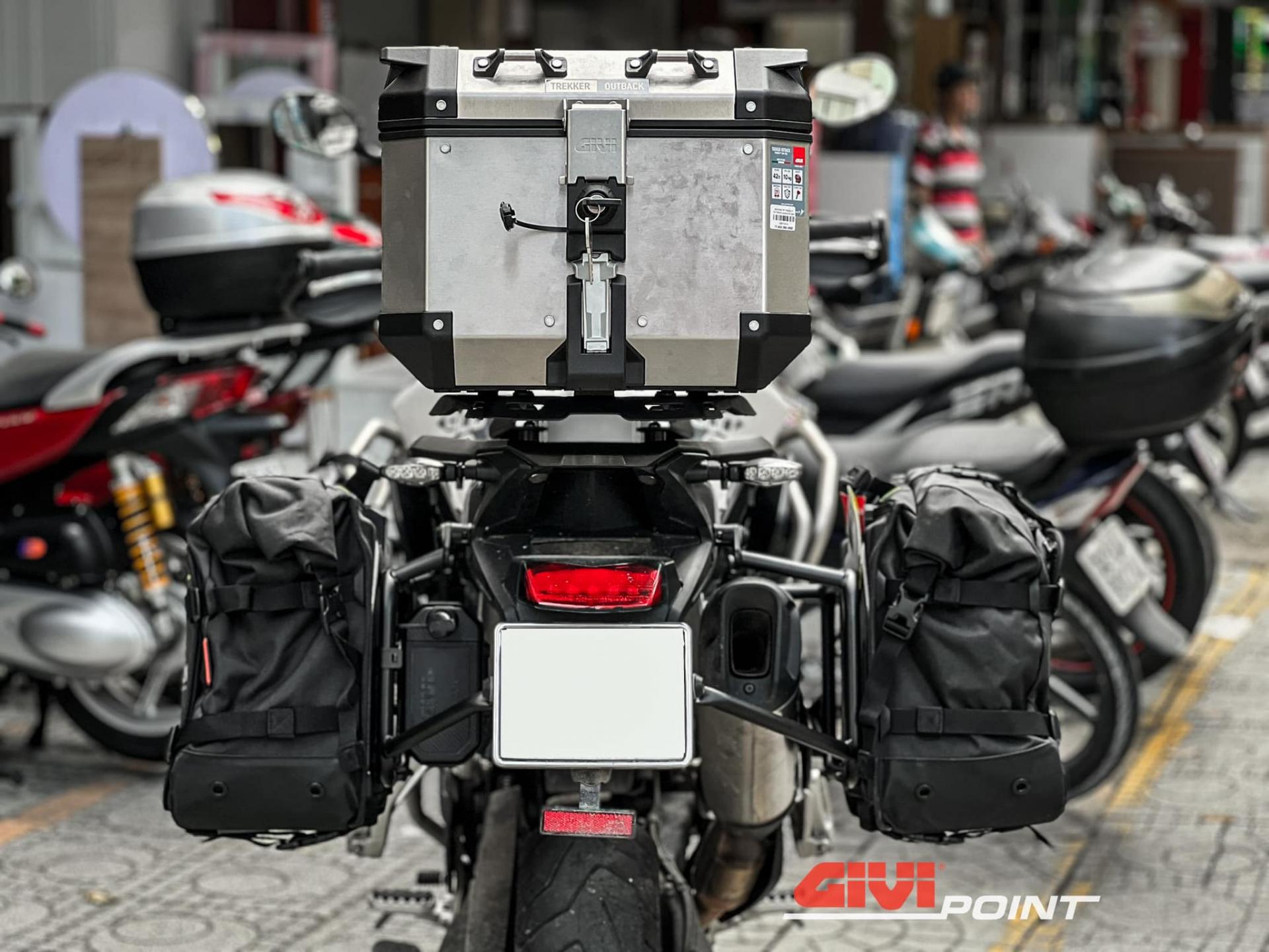 Hộp đồ nghề GIVI được trang bị cố định bên hông khung xe gọn gàng và chắc chắn