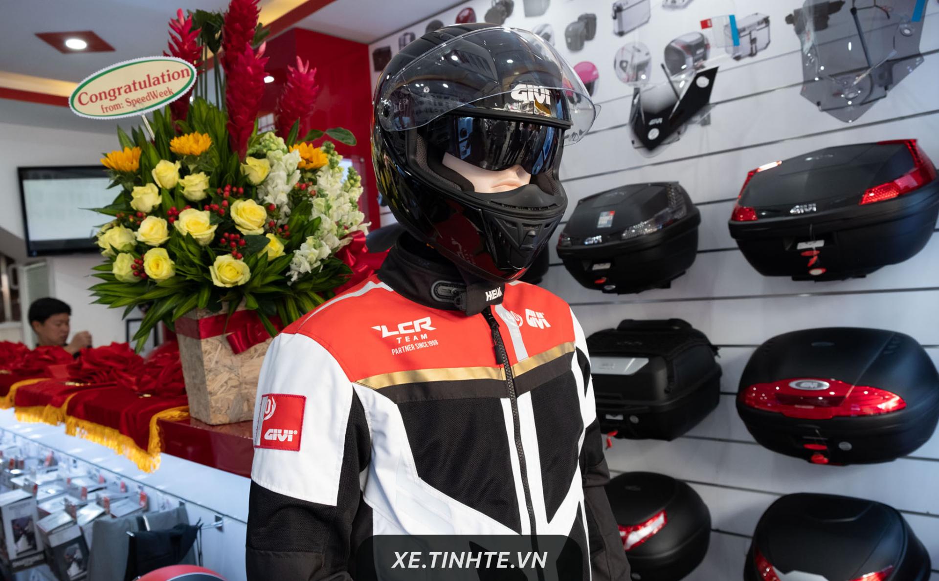 Nhân dịp khai trương cửa hàng trưng bày mới, hãng phụ kiện xe đến từ Ý - GIVI cũng giới thiệu đến thị trường Việt Nam thương hiệu đồ bảo vệ hoàn toàn mới của họ có tên là HEVIK. Dòng sản phẩm HEVIK sẽ bao gồm áo, quần, găng tay bảo hộ cho anh em biker và được khu vực hoá về thiết kế, cũng như vật liệu cho phù hợp với thị trường nhiệt đới.Đứng giữa là bà Hendrika Visenzi - Phó Chủ Tịch của tập đoàn GIVI Ý