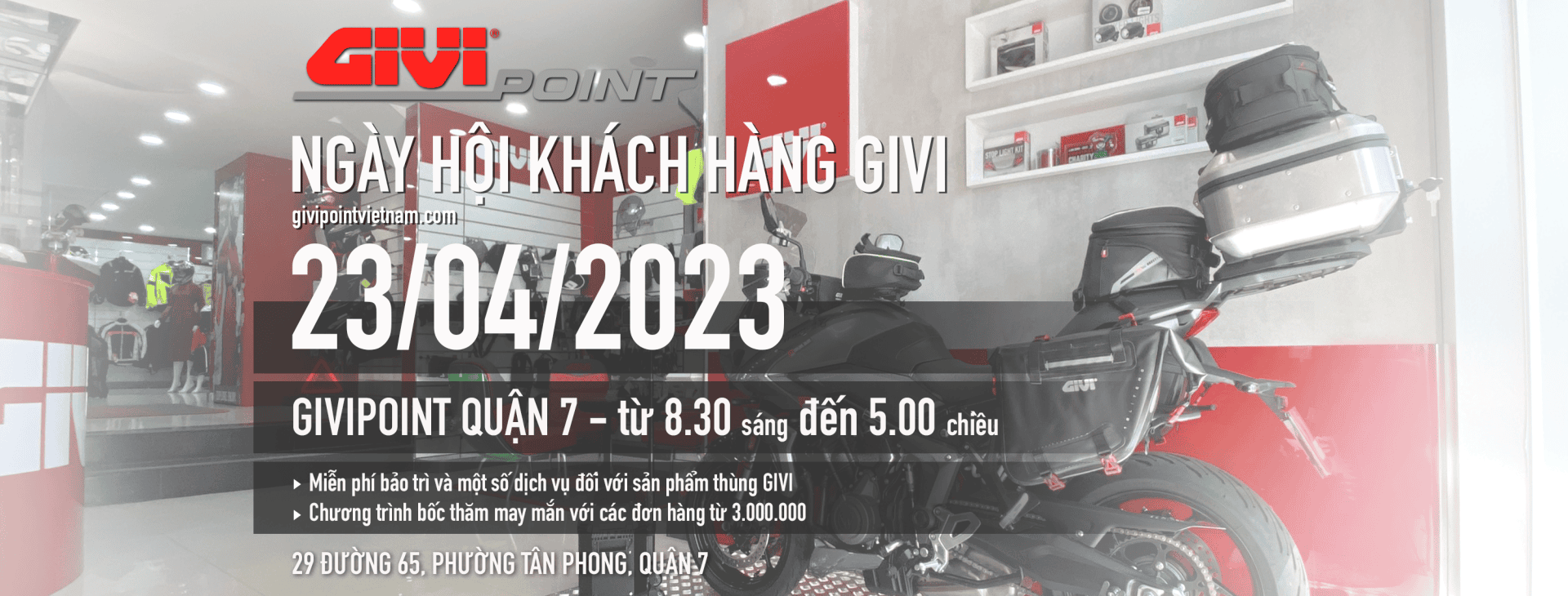GIVI Point Customer Day là Ngày hội khách hàng do GIVI Việt Nam tổ chức tại TPHCM và Hà Nội nhằm tri ân các khách hàng đang sở hữu các sản phẩm chính hãng của GIVI tại Việt Nam.